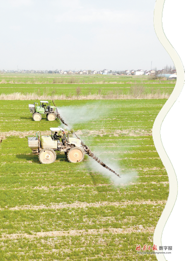 高标田有此魅力,全村承包粮田面积占大头的5个种粮大户自然欢喜在心。村东,300亩成片麦田郁郁葱葱,施肥机正穿梭喷撒小麦拔节肥。“这片‘后腿田’,夏收定能妥妥获高产。”指挥生产的陈征宇是全市有名的种粮能手,目前散布于周边村的小麦总面积达2000多亩。他告诉记者,“去年,这片麦田因排水堵、受渍害减产两成,影响整体产量。今年,麦田虽迟播10来天,还遇到了‘倒春寒’和连续阴雨,但提档升级后土地平整、排灌顺畅,加之培管得当、以肥促发,眼下小麦长势喜人,丰收基础扎实。”