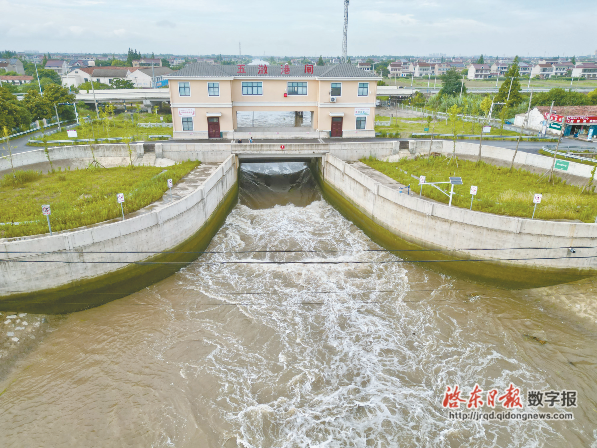 6月23日,五滧港闸正在开闸放水。受连日降雨影响,我市河道水位上涨明显,根据市防汛办统一部署,6月20~23日,全市沿江沿海14个涵闸皆已进行不同时段的开闸放水,预计将内河水位降至3米以下的低水位。