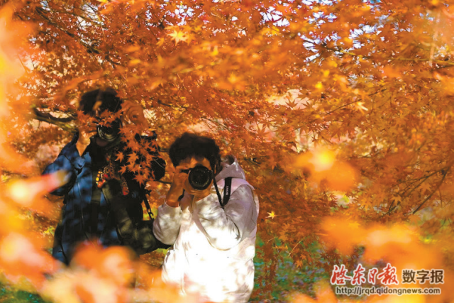 初冬时节,小叶鸡爪槭由绿渐黄渐红,声势浩大的斑斓与热烈震撼人心;暖阳和煦,叶影斑驳,槭林的美映衬着诗歌、摄影、绘画、音乐、舞蹈等艺术之美,惹人醉。