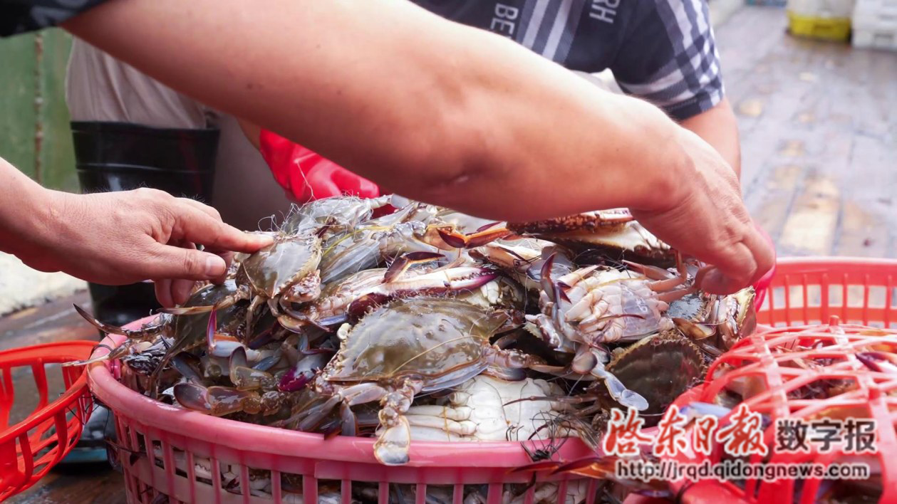 “这批总共有100多筐大梭子蟹,还有400多箱米鱼、鲳鱼、黄鱼等,还算丰富。”船长刘克迎告诉记者,今天船队共有两艘船进港卸货,共收获2万斤左右梭子蟹,3万斤左右鱼类产品。自大开渔以来,船队渔获产值已有近50万元。