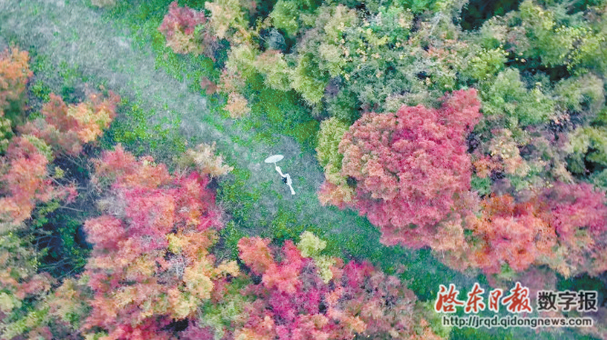 长江口3800亩槭树林铺陈一片飒爽的秋色,宛如燃烧的火焰,却又带着秋天的静美,漫步其中,惬意而舒适。