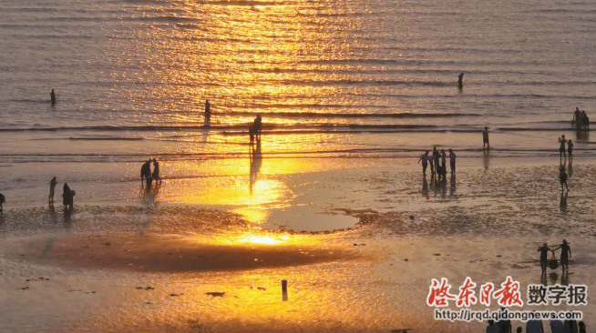 秋日来黄金海滩看日出,金色的阳光洒在海面上,在秋风吹拂下波光粼粼。赶海的人们成了最生动的点缀,海浪声伴随着欢声笑语,是这个秋天最美的声音。