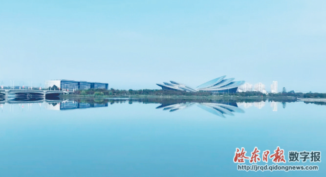 当秋高气爽遇到启东“水晶天”,蓝得深邃、白得纯净,而蝶湖无疑是赏秋首选。水中保利大剧院的倒影与天相接,辽阔而悠远,城市的天际线与秋色交相辉映,就是最美的诗与远方。