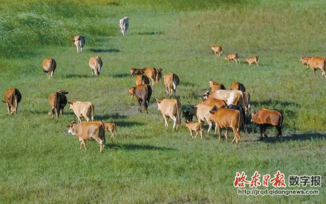 启东城区往南,一道堤坝静静地划出两个世界,一侧是浩瀚的长江,一侧是丰美的水草地。牛群觅食,白鹭翩飞,这里便是启东的“阿勒泰”。