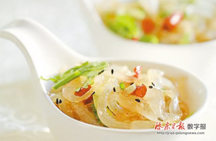 作为中国“海产八珍”之一,个大、脆嫩的吕四海蜇皮色泽光亮,肉坚实松脆,经过加工调制的海蜇冷盘,脆嫩、透鲜、爽口。