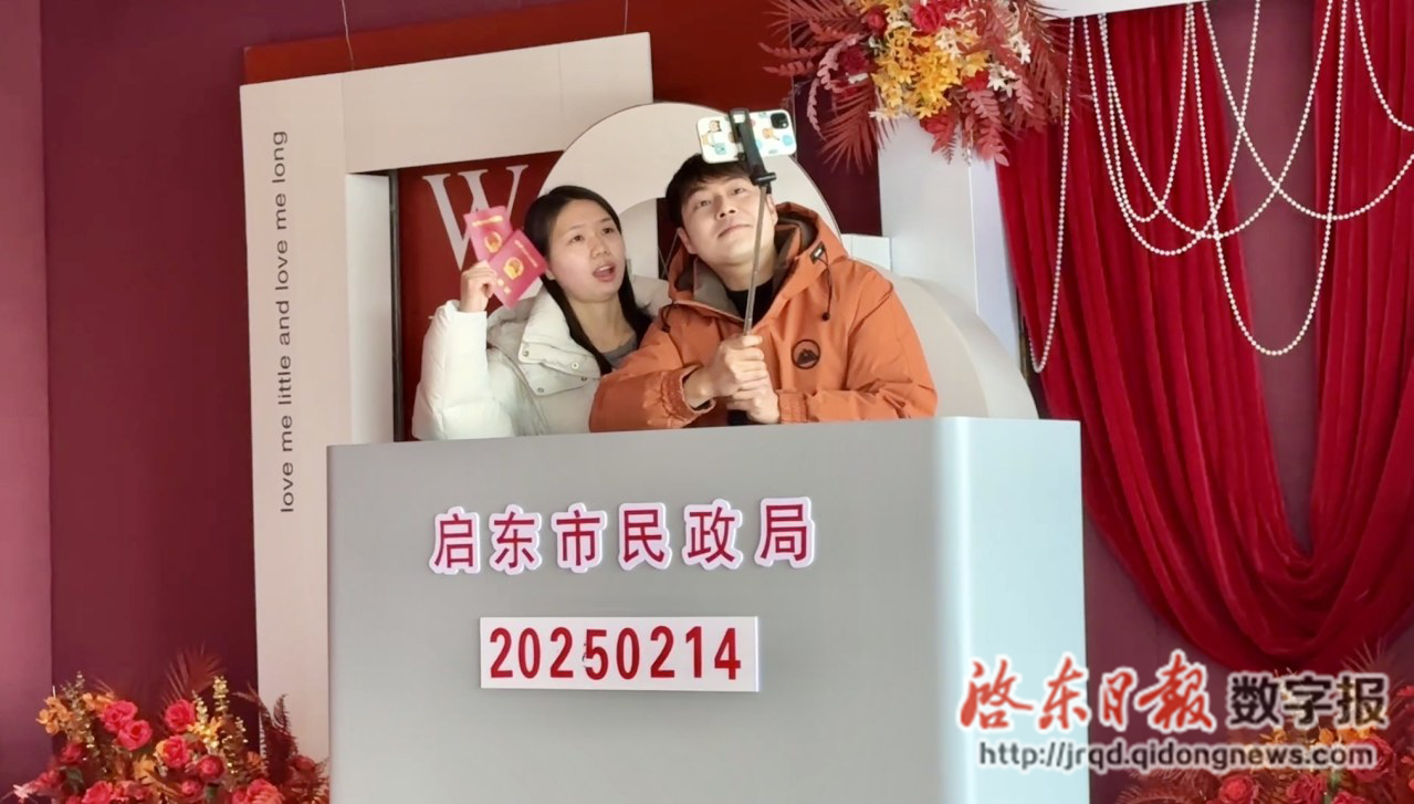 同样相恋1年多的杜天豪和祁佳艳,也特意选择在情人节这天来领证。“选择今天领证,是希望我们的爱情如同这个节日一样,充满了甜蜜。”红彤彤的证件承载着小两口对未来幸福生活的向往与期许,举着证件自拍留念时,两人默契地相视一笑,眼中满是坚定和信任。“未来我们一定会经营好我们的小家庭,每一天都过得开开心心。”杜天豪笑着说。