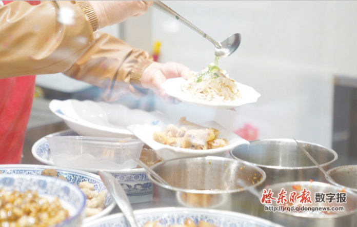 如果你想学启东本地人吃一顿地道的海鲜,首先得学会“看碟下菜”。凉菜现切、明档自选、手写菜单,琳琅满目的菜品整洁有序地摆放在冷柜中。一拃长的梅童鱼,清蒸滋味最美;膏黄肉肥的梭子蟹,宜用葱姜爆炒;热菜上桌前再点上几道凉菜,醉泥螺、生炝虾、凉拌海蜇丝……