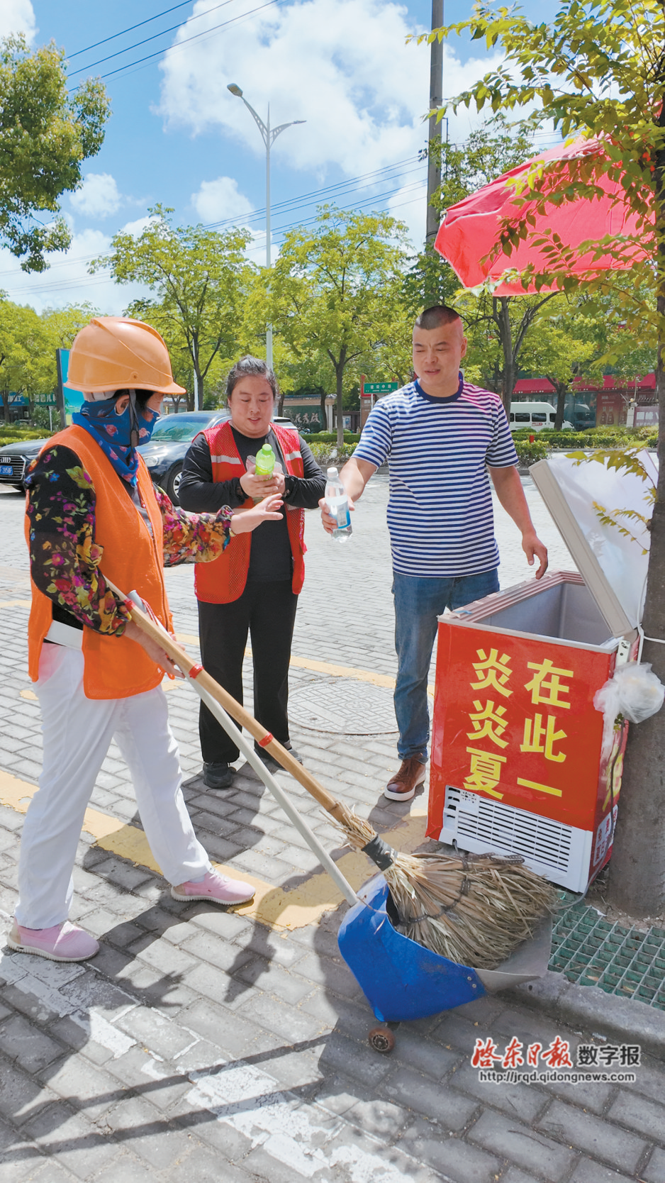 这处暖心驿站,很快成了户外工作者的“能量补给站”。负责建设路与泾河路清扫的保洁员施海涛,一上午的忙碌后总会来这儿歇歇脚。拧开一瓶冰镇矿泉水,站在树荫下喝上几口,脸上的疲惫便消散了大半。“真的打心底里高兴,太感谢他们了。”她说,高温天在外暴晒作业,身体常吃不消,如今有了这处驿站,就近喝口水,踏实又舒心。