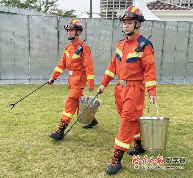 6辆消防车在指定位置待命,29名消防员各司其职,成为守护现场安全的“橙色防线”。重点排查烟头、冷烟火等各类火源,对现场包装纸、塑料瓶等可能引发火灾的物品进行不间断清理,消防艇往返巡逻,密切监控水域动态,防范意外落水事件。