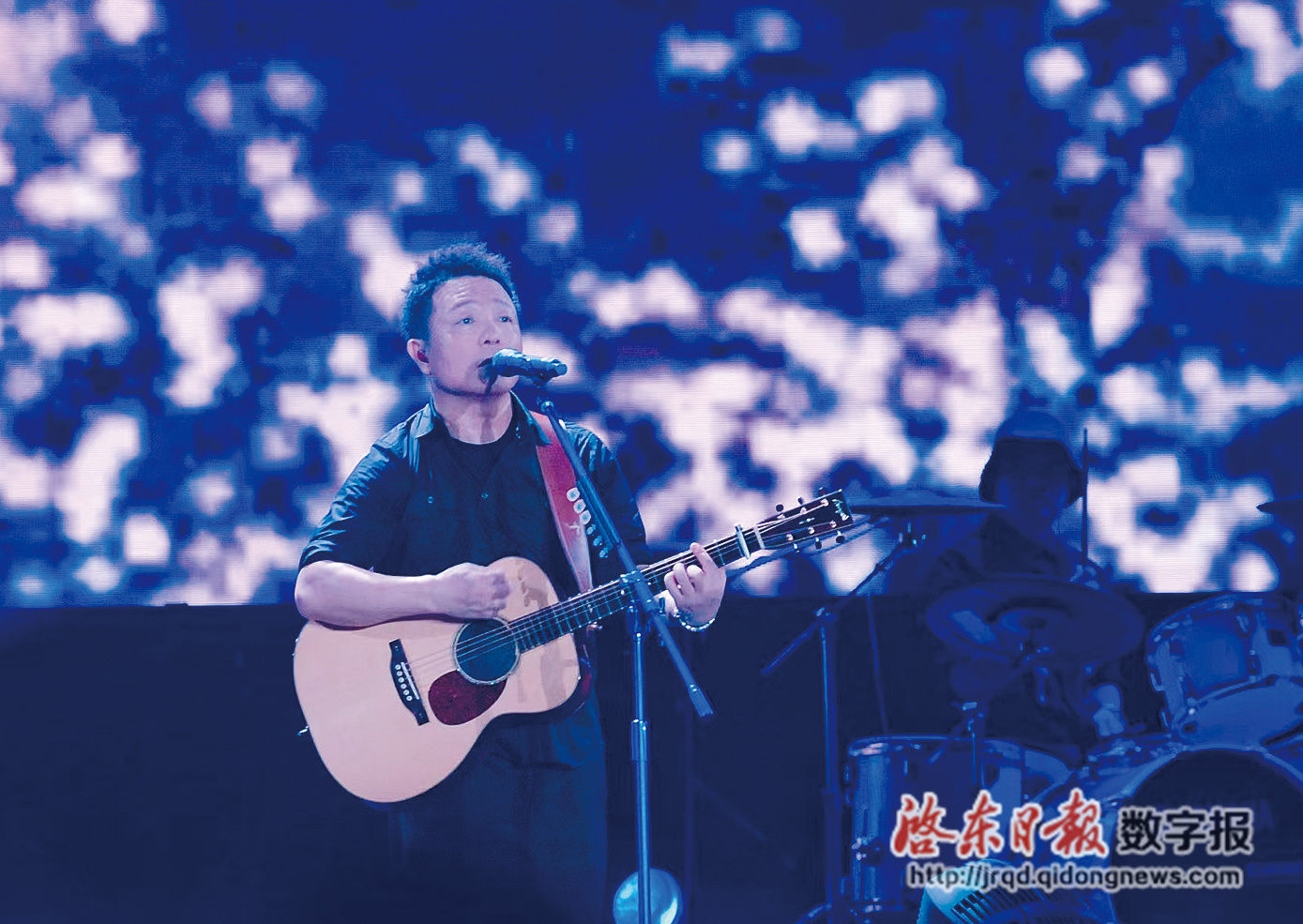 在万众期待之下,大幕徐徐拉开。压轴歌手许巍登台亮相,一句“曾梦想仗剑走天涯,看一看世界的繁华……”瞬间引燃全场。熟悉的旋律响起,引发万人合唱,声浪如潮。