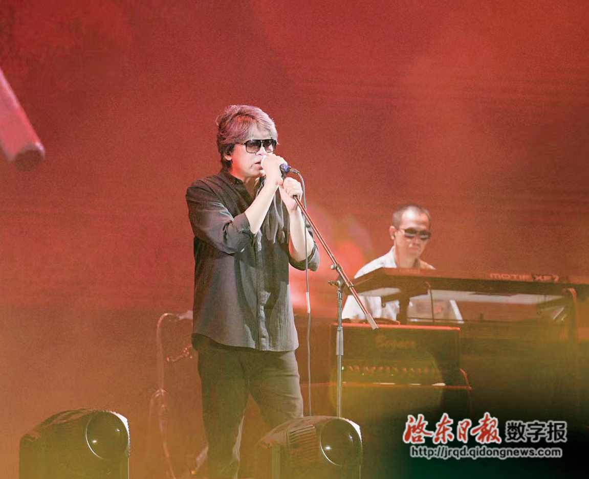 夜幕降临,舞台灯光愈发璀璨,吴克群自带“燃场buff”登场,《将军令》动感节奏一响起,台下立刻沸腾;《为你写诗》旋律轻快,全场合唱满是青春怀念。“这首歌送给你们!愿在启东的各位一生找到可以爱你一辈子的人!”互动环节,吴克群一句“嗨,启东!”瞬间拉近了与台下乐迷的距离,让整片场地都沉浸在热情的呼应之中。