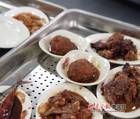 来自四川的李显蓉一家已经连着10多天在幸福食堂用餐,“青占鱼是必点菜,这种鱼在我们四川吃不到,味道真好,我儿子也喜欢吃。”东珠宾馆总经理、幸福食堂负责人黄惠平介绍,幸福食堂每天上20多个菜品,荤素搭配,其中,红烧狮子头、青占鱼等是这里的招牌菜,用地道的风味拴住市民的胃与心。