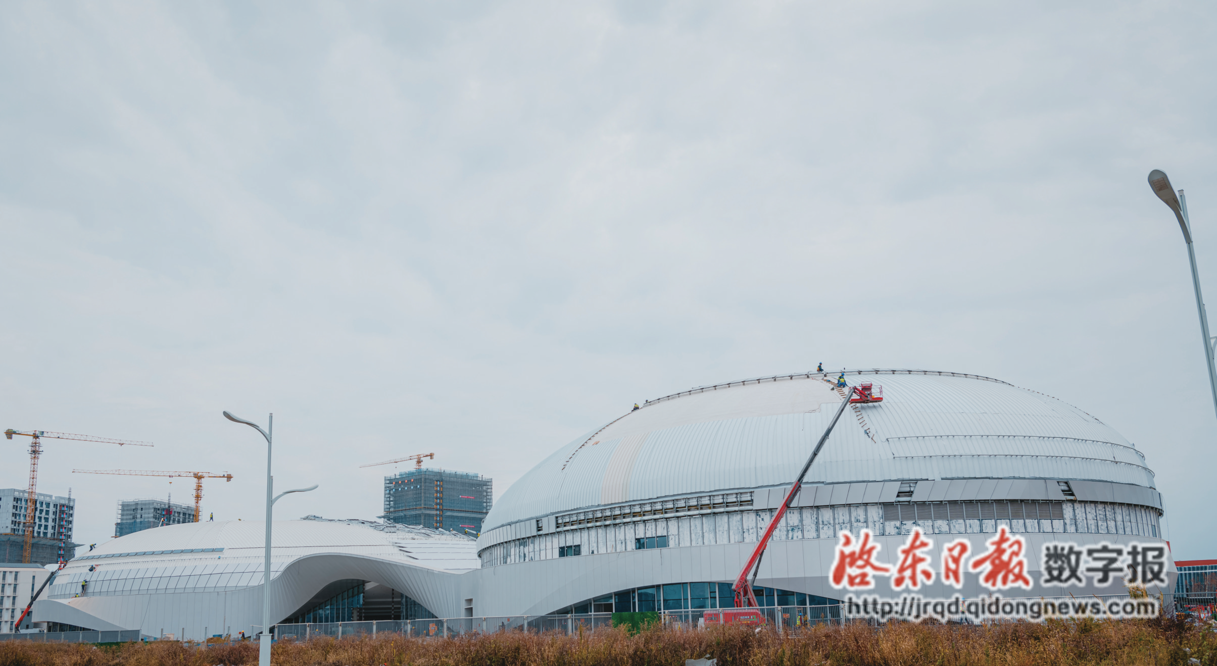 12月16日,位于钱塘江路南、新安江路北侧的启东中学新校区项目建设现场,工人们正对部分主体工程进行装修施工。