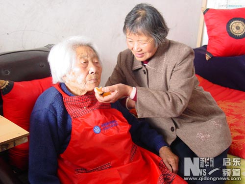 蒋利胜是老人二儿子的孩子。蒋利胜不满周岁时母亲因病去世了,他被送到了老人身边。不会说、听启东话的蒋利胜,让老人吃足了苦头。但老人丝毫不言辛苦,一直把蒋利胜带到了20多岁后,才放心地让他离开。蒋利胜现在在山东工作,定期给老人邮寄钱物,每年还会抽空来看看奶奶。