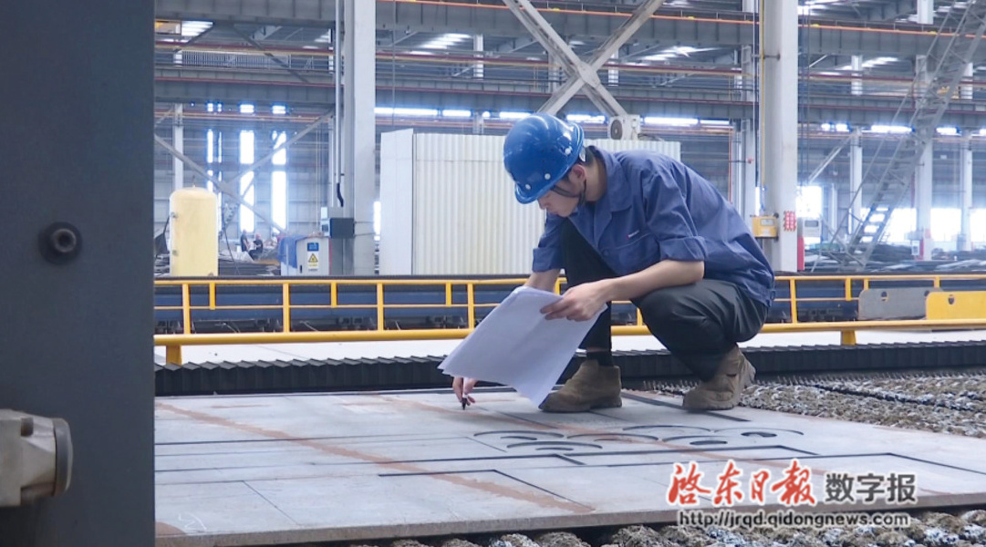 9月12日,江苏卫华海洋重工有限公司联合车间内,光尘轻舞,机器低鸣,22岁的下料工马俊超站在激光切割机前,专注核对着图纸数据。只见他微微俯身,手指沿着图纸上的复杂线条缓缓移动,不时用指尖轻点某个关键尺寸,反复确认。