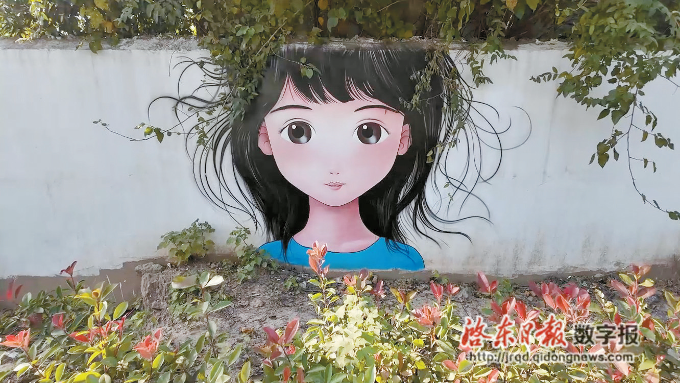 最受欢迎的,莫过于各处藏着巧思的创意小景墙。在镇便民菜场北侧老街的墙面,翠绿藤蔓顺着墙体自然攀爬,画师顺势将其与少女图案融为一体,藤蔓缠绕成飘逸的长发,少女眉眼温柔,仿佛从自然中走来,引得市民游客纷纷驻足合影,用镜头定格这份人与自然的和谐之美。