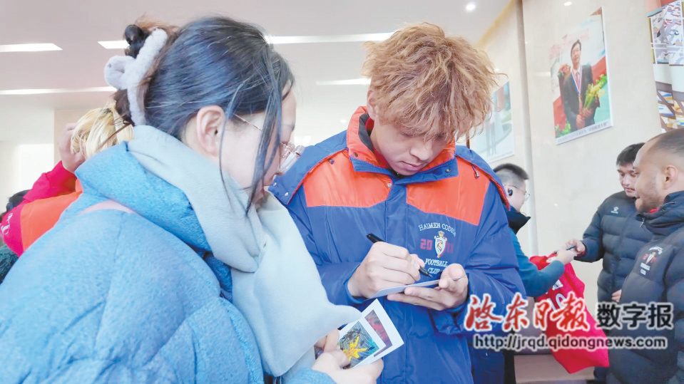 “看到球员们在赛场上拼搏,展现了我们南通的体育精神和力量,让我特别骄傲!”启东球迷黄天瑜脸上写满激动,他刚与心仪的球员完成签名合影,“今天把签名球衣带回去,我老婆和女儿不知道要多高兴!足球让我们有了共同话题,这种氛围太好了。”