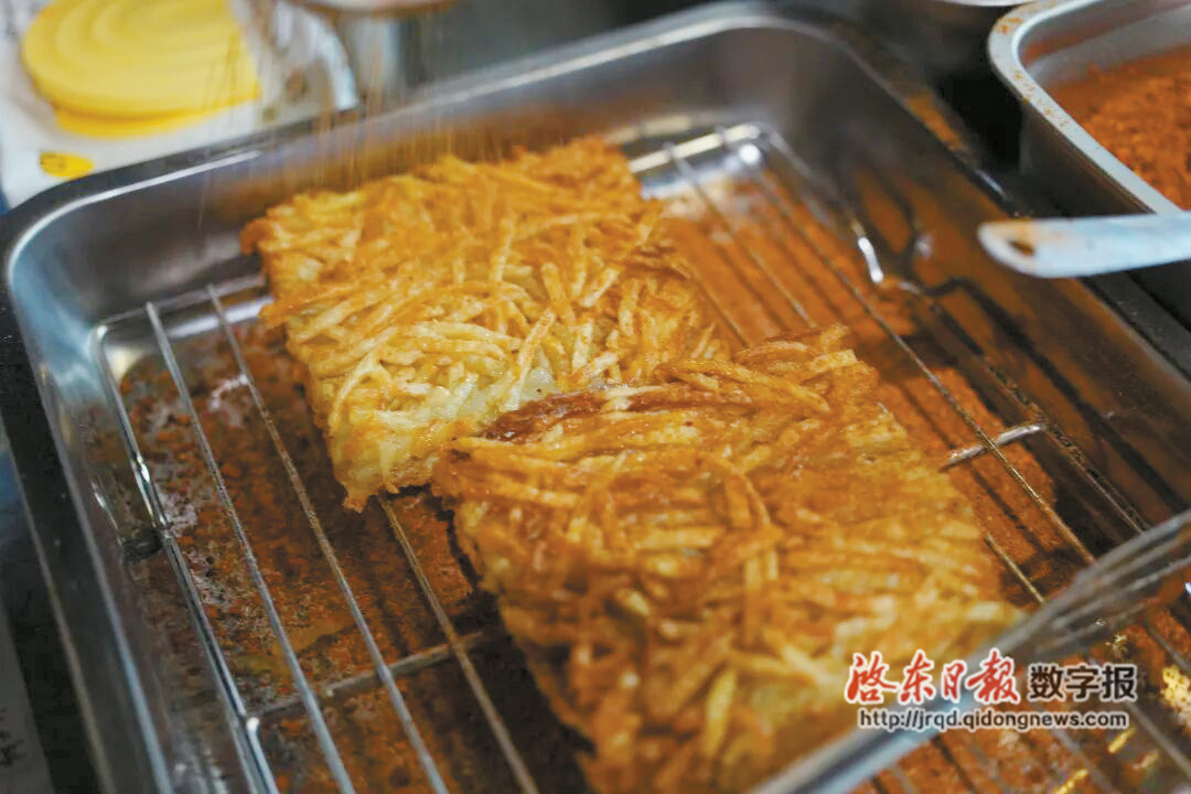 令人惊喜的是,就是这样一个不起眼的小摊,却仿佛有种魔力,总能吸引步履匆匆的人们驻足。“听到顾客夸一声‘好吃’,或者看到他们接过饼就迫不及待咬一口的样子,心里特别有成就感!”顾凤分享道。顾客盛宣淳前几日被朋友带来品尝后,就对那外脆里糯的滋味念念不忘,今天特意前来回购:“朋友说特别好吃,果然名不虚传!”小盛接过热乎乎的土豆饼笑着说。