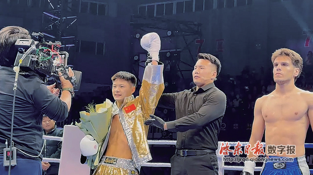 值得关注的是,启东小将沈英杰在职业搏击积分赛中表现出色,57秒KO了来自摩洛哥的对手祖海尔·艾尔法德尔(如图)。这位2007年出生的63KG级自由搏击选手,现效力于深圳盛力人和俱乐部,12岁开启职业生涯以来战绩亮眼——截至2025年11月,他累计参赛18战15胜,9次KO对手,此前还曾创下53秒速胜的纪录,堪称中国搏击界最受期待的新生代力量。
