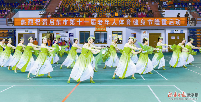4月26日,2018江苏省老年人体育节启东分会场启动仪式暨启东市第十一届老年人体育健身节在市体育馆开幕。来自全市各镇、街道、村、社区的65支老年人健身群众团队1600多人参加了开幕式,分别展示健身绝活。