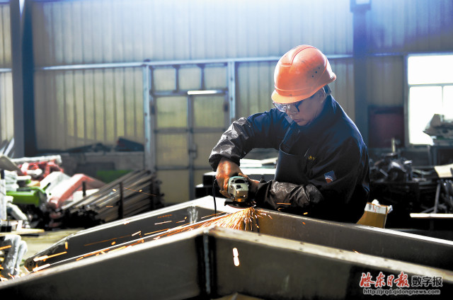 5月2日,南通铁人体育设施工程有限公司生产车间内,工人在忙碌生产。