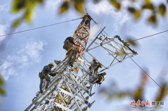 9月25日,国网启东供电公司施工人员正加紧组建宁启铁路110kv红阳港至启东牵引站线路34号铁塔。