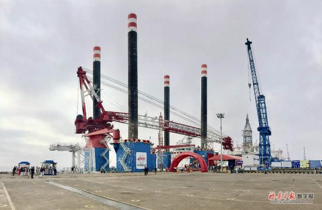 目前我国建造的最先进、综合性能最优风电安装船昨交付使用