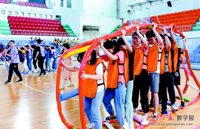 7月24日,团市委组织暑期回乡参与社会实践活动的启东籍大学生,在市一中体育馆开展“破冰行动”素质拓展活动。163名大学生组成8支队伍,通过4个充满互动性和趣味性的游戏,增进彼此了解,培养团队意识。