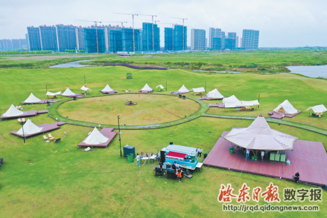 6月12日,圆陀角旅游度假区新湖绿城海上明月花儿营地海风伴着花香,偌大的草坪上,帐篷依次排开,来此露营的游客络绎不绝,享受难得的休闲时光。