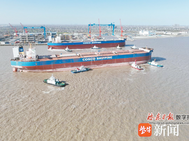 本报讯 3月13日,启东中远海运海工两艘超大型散货船在海巡艇和9艘大马力拖轮的共同维护下,顺利完成进出坞作业(如图)。